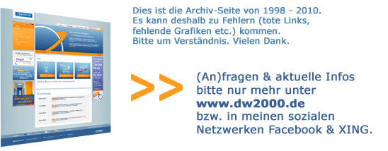 dw2000.de mit Sitz in Willmering bei Cham in der Oberpfalz (Ostbayern) - seit 2009 Änderung Name & Rechtsform auf: aplido GmbH - entwickelt bereits seit 1998 professionelle Internet-Auftritte, eCommerce-Projekte und (auch mehrsprachige) Online-Marketing-Konzepte mit echtem Nutzen für Ihr Unternehmen und Ihren Kunden ... Als kompetenter und langfristiger Partner für professionelle Integration von e-Business in Ihr Unternehmen und als Ideengeber für Ihren weltweiten Erfolg im Internet bieten wir Ihnen ein komplexes Leistungspaket! Auch Reseller wie Domain-Provider & Werbe-Agenturen aus ganz Europa greifen auf unsere Kompetenzen im Bereich unserer Spezialisierungen eShop-Lösungen und Suchmaschinen-Optimierung zurück. Auf dem schnell wachsenden und sich stets verändernden Internet-Markt haben wir uns ständig weiterentwickelt und uns gesund und seriös zu einer mittlerweile international gefragten und renommierten Internet-Agentur fest etabliert.