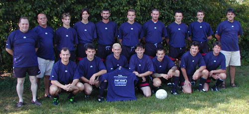 Das Foto oben zeigt Werner Dandl (kniend ganz links), Inhaber der Fa. DW2000 - Internet & Lösungen, bei der Übergabe der T-Shirts an WiWa-Vorstand Hans Eichstetter (ganz links) vor der versammelten ersten Mannschaft der SpVgg. Willmering/Waffenbrunn.